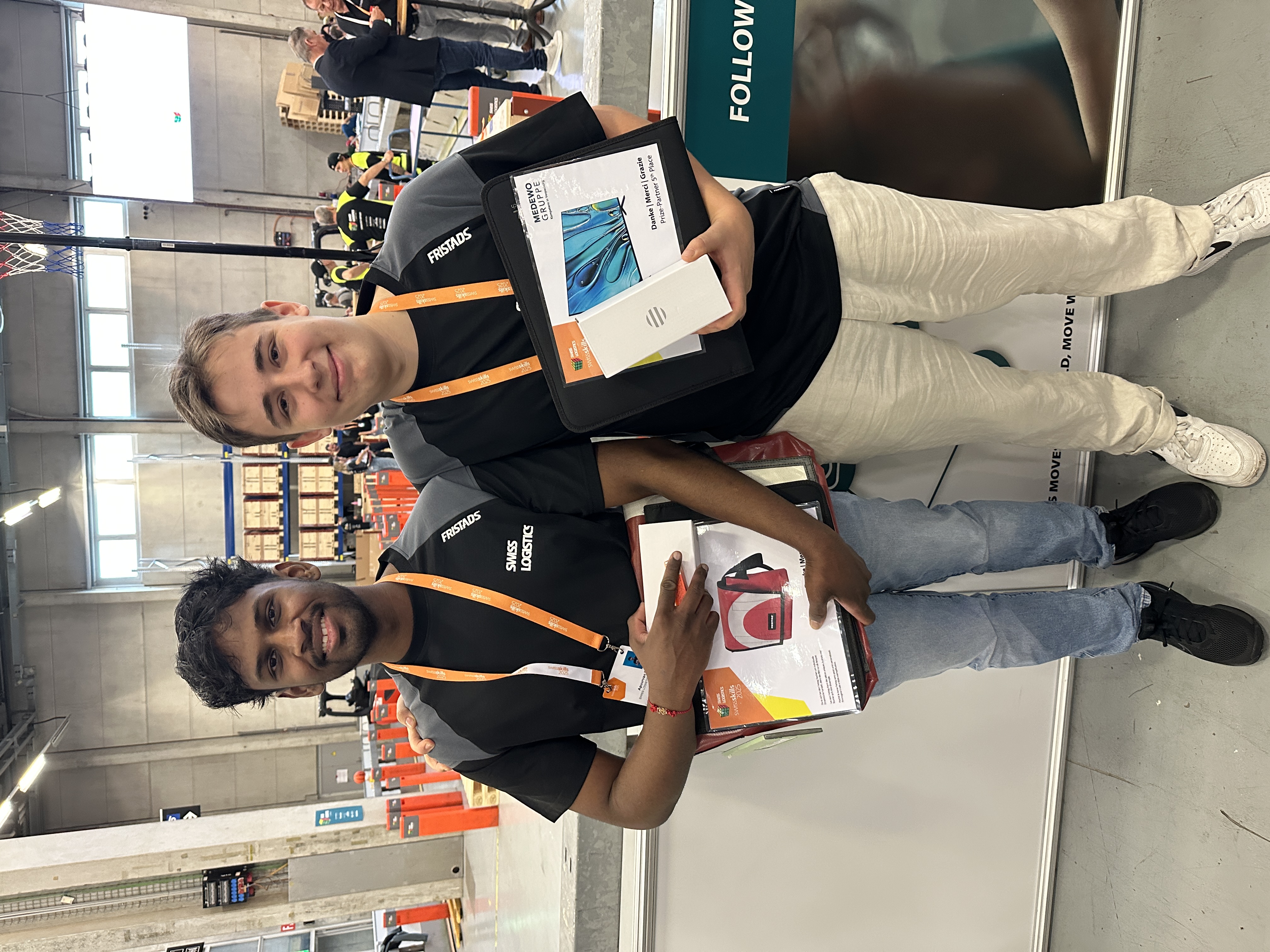 Apuurvan Ravindran and Andrin Lars Hottinger demonstrated their logistical skills in various disciplines. They drove a forklift truck through narrow courses, had to correctly assemble pallet patterns, maneuver through the "hot wire" and master tasks such as incoming goods, order picking and loading goods. Both showed strong performances over the four days - Andrin with an excellent 5th place, Apuurvan with an equally great 18th place.